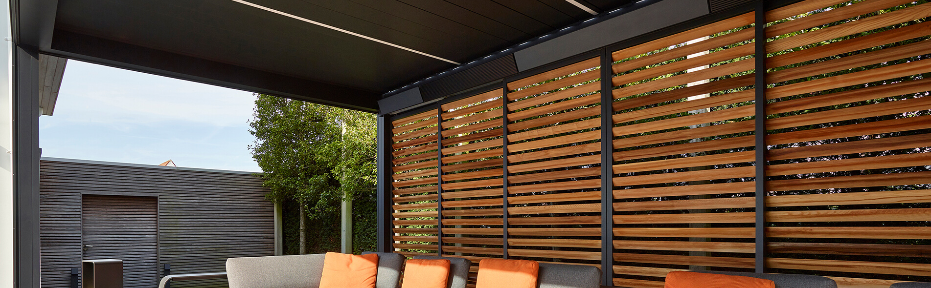 Een Renson lamellendak is dankzij de weerbestendige constructie een perfect basis voor een tuinkamer die het hele jaar kan gebruiken. Bij Renson vind je daarvoor ruime keuze in zijelementen die je beschermen tegen zon, wind en regen.