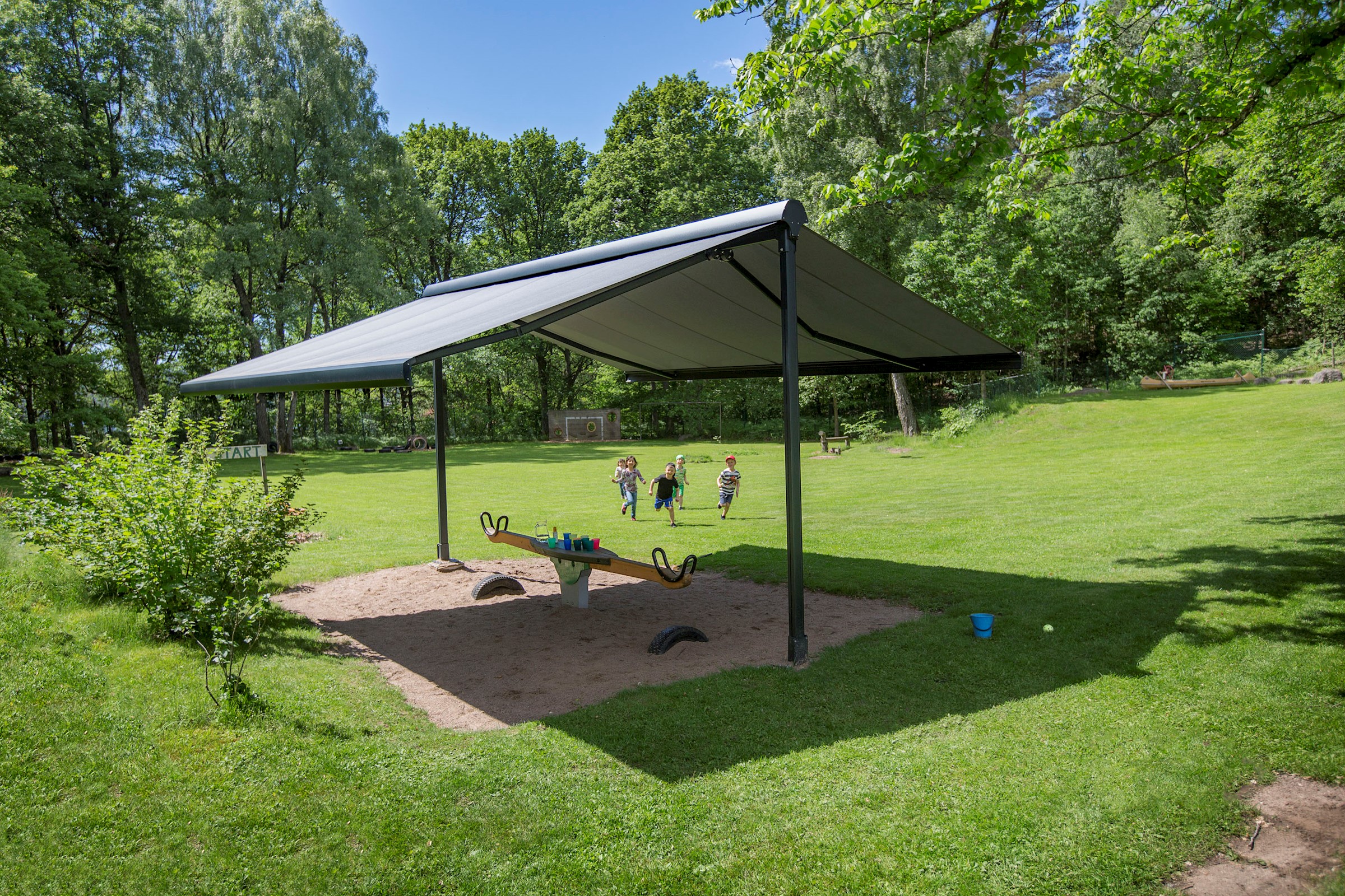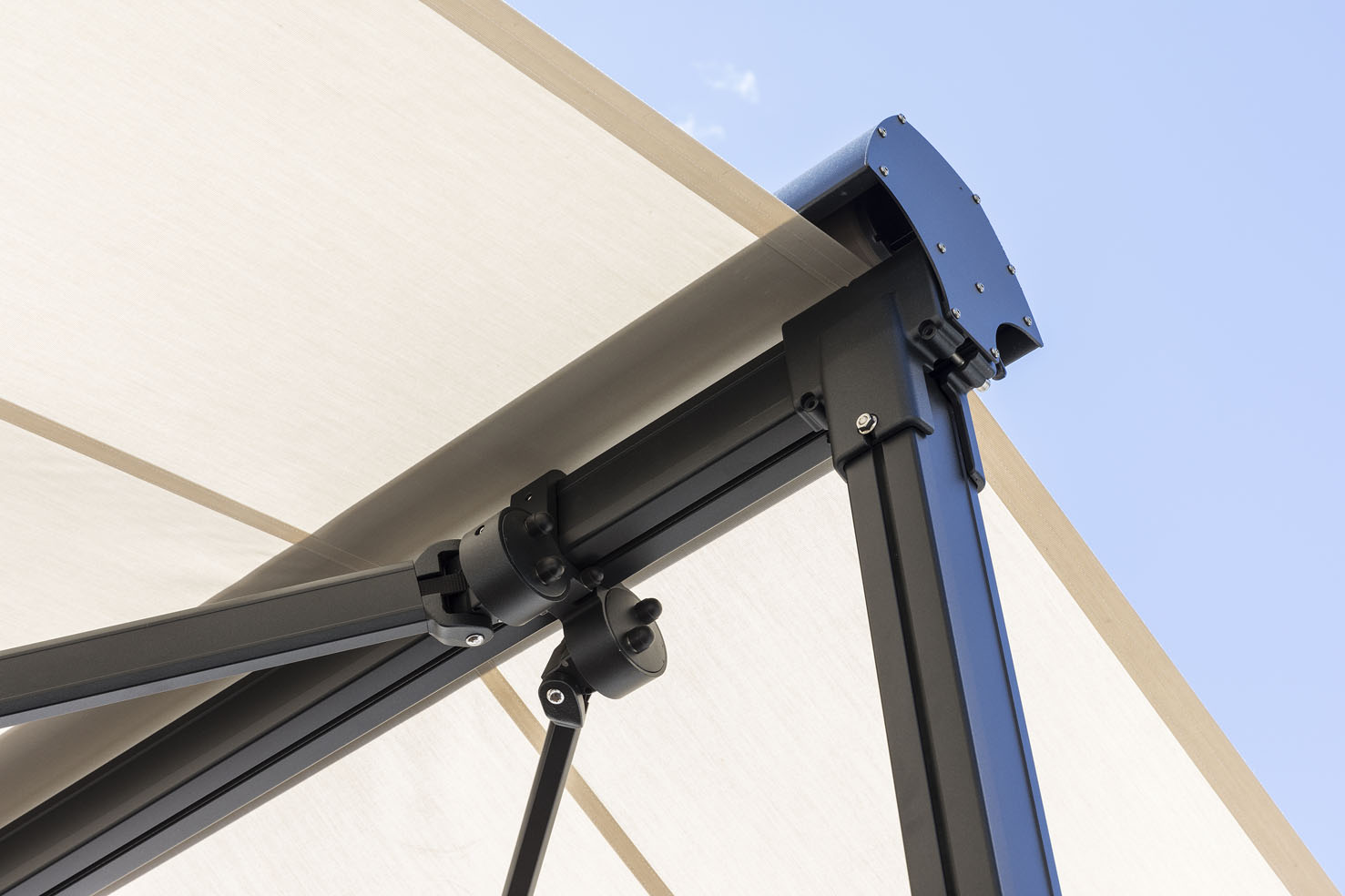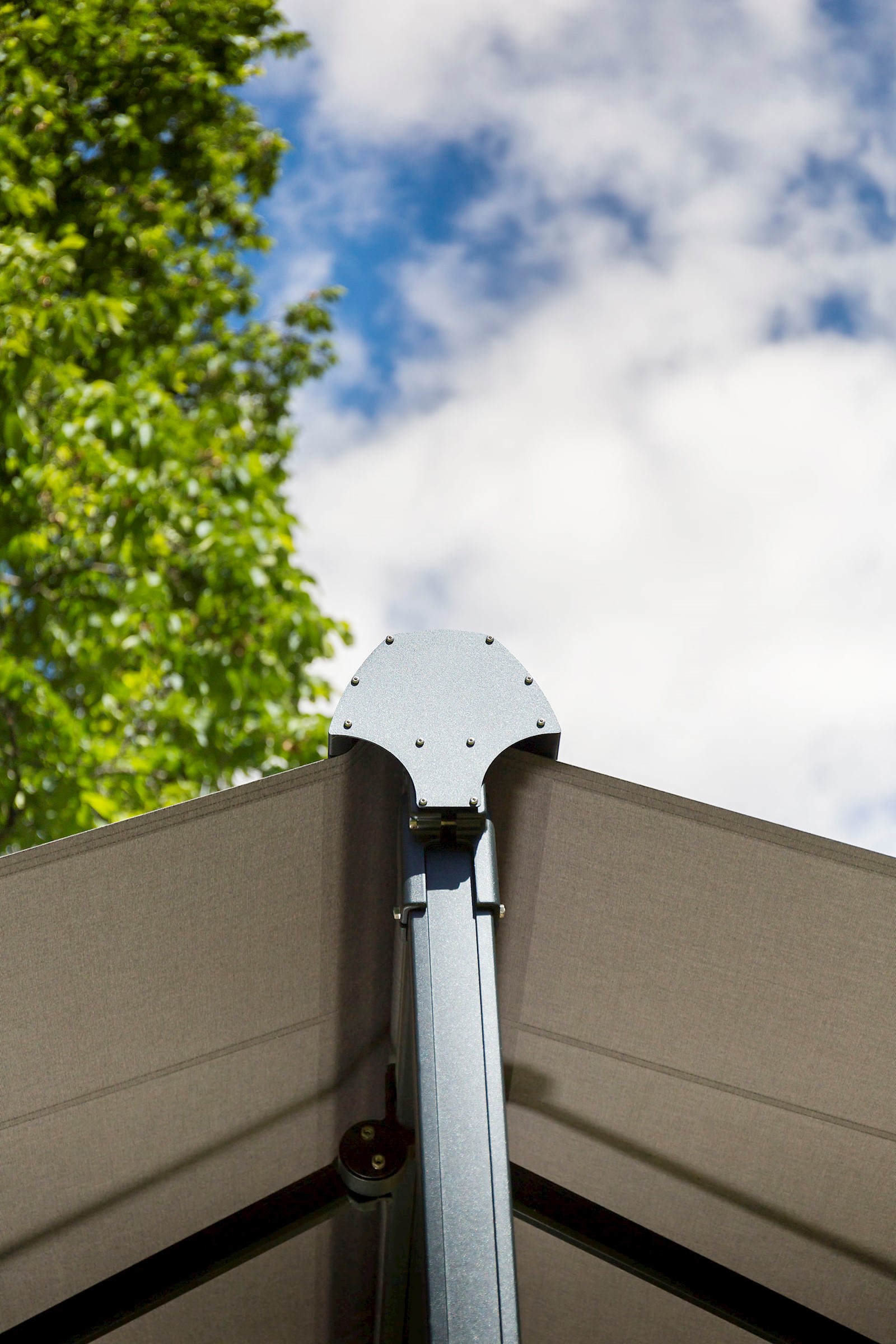 De Luxaflex Ponto Doble is een buitengewoon krachtig, dubbel, vrijstaand zonnescherm. Speciaal ontworpen voor grotere open ruimtes. Zo is dit scherm in één keer met twee zonneschermen te overspannen, voor optimale zonwering.