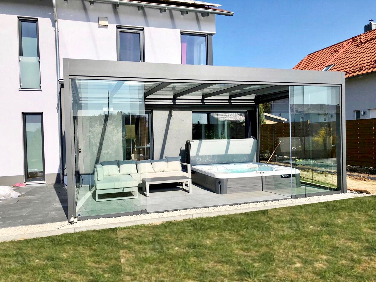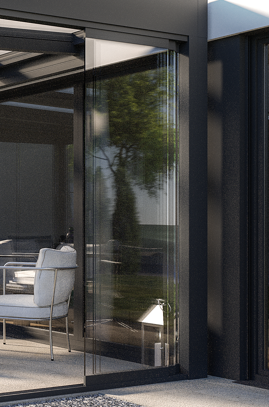 Maak van je overkapping een tuinkamer met de toevoeging van glazen wanden! Dankzij een glazen wand kan je nog eerder in het jaar buiten zitten. Een flexibele wand zoals een vouwwand of schuifwand maakt het mogelijk op de warmere dagen te ventileren.