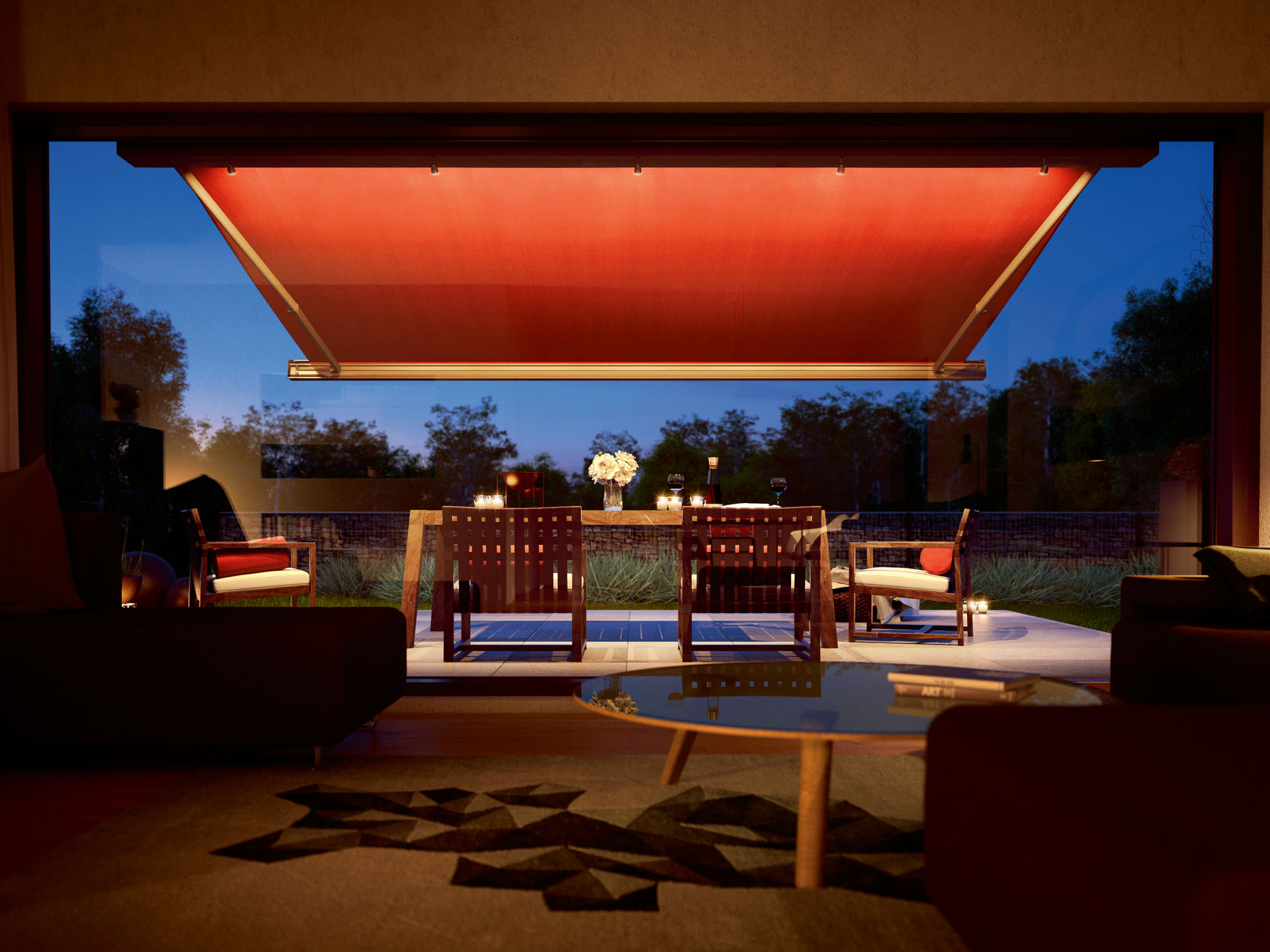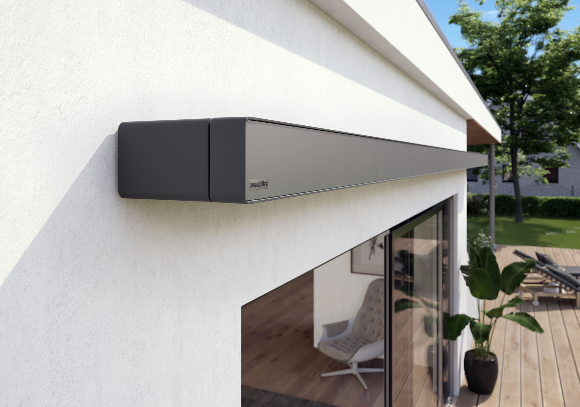 De MX 970 is een strak vormgegeven zonnescherm. De cassette bestaat uit rechte lijnen met een hoogwaardige afwerking zonder schroeven in het zicht. Bijzonder aan de MX 970 is het gekleurde frontpaneel dat het scherm een bijzondere uitstraling geeft. De MX 970 kan uitgevoerd worden met een uitrolbare volant, een LED-strip in de cassette en LED-spotjes in de voorlijst.