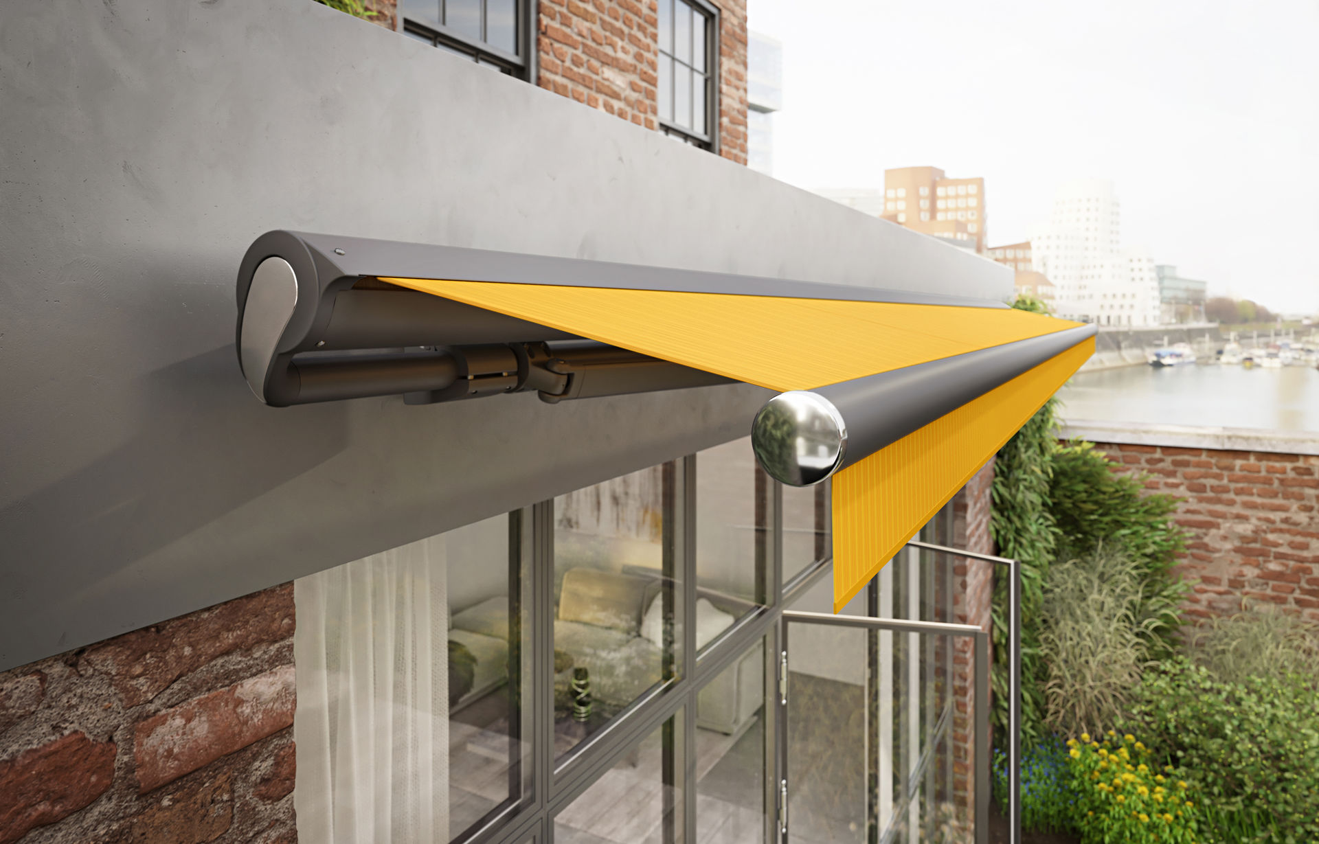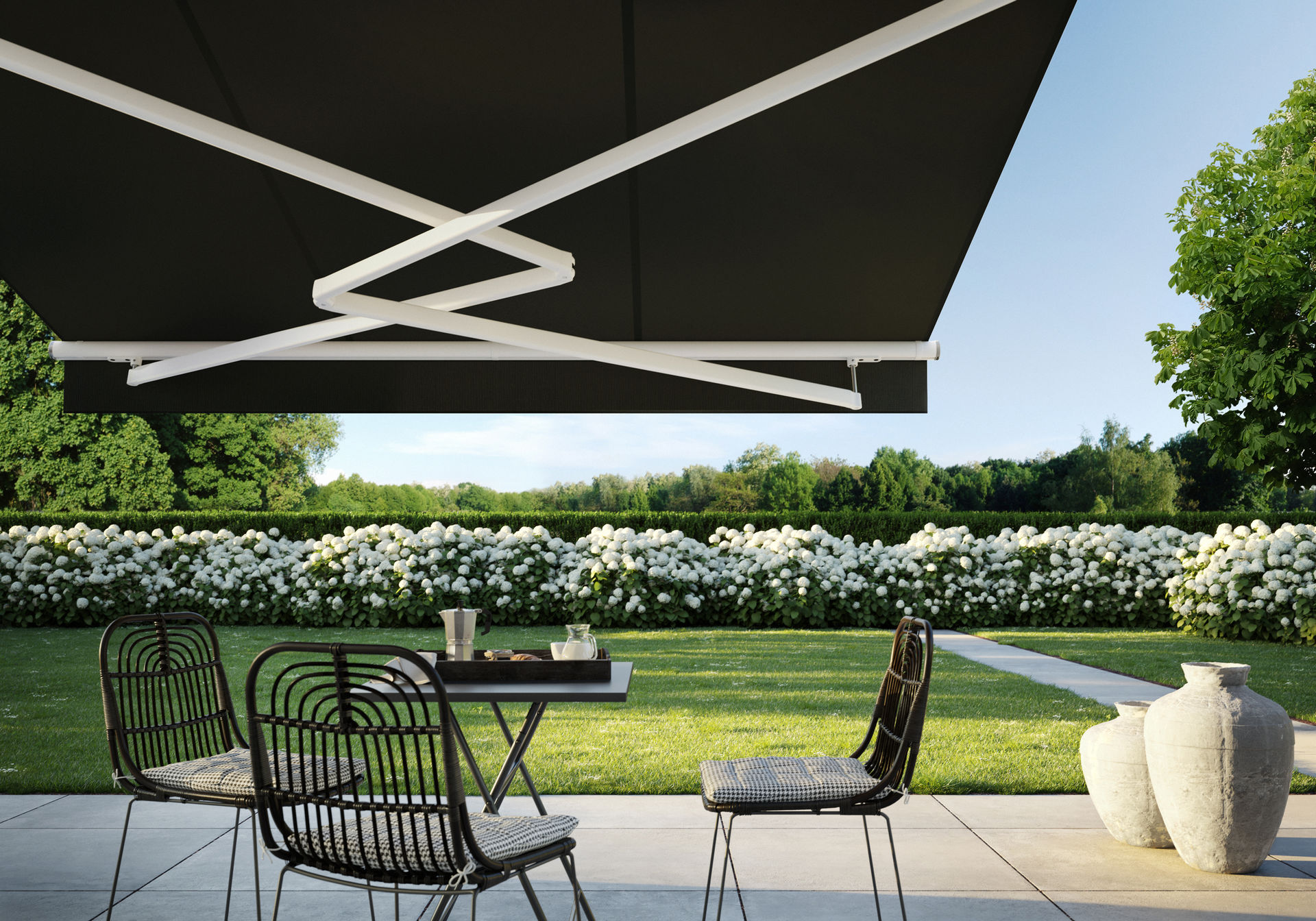 De MX 1710 is een knikarmscherm met een open systeem. De ronde draagbuis waaraan de armen worden bevestigd geeft het scherm een klassieke uitstraling. Het scherm is toepasbaar onder een afdak/balkon of in situaties waarbij het scherm praktisch altijd uit staat.