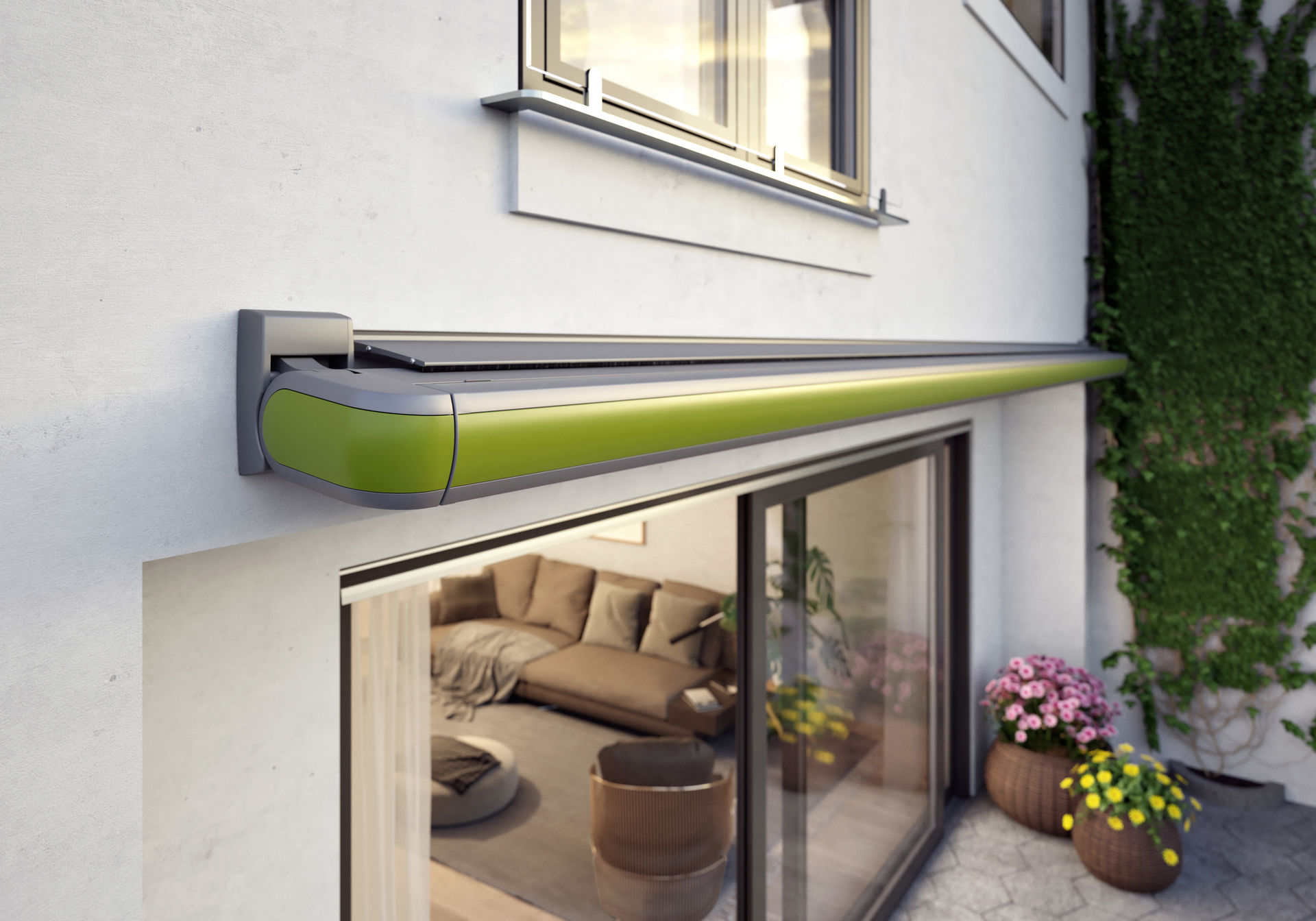 De kunststof front- en zijpanelen geven de mogelijkheid een unieke uitstraling aan het zonnescherm te geven.