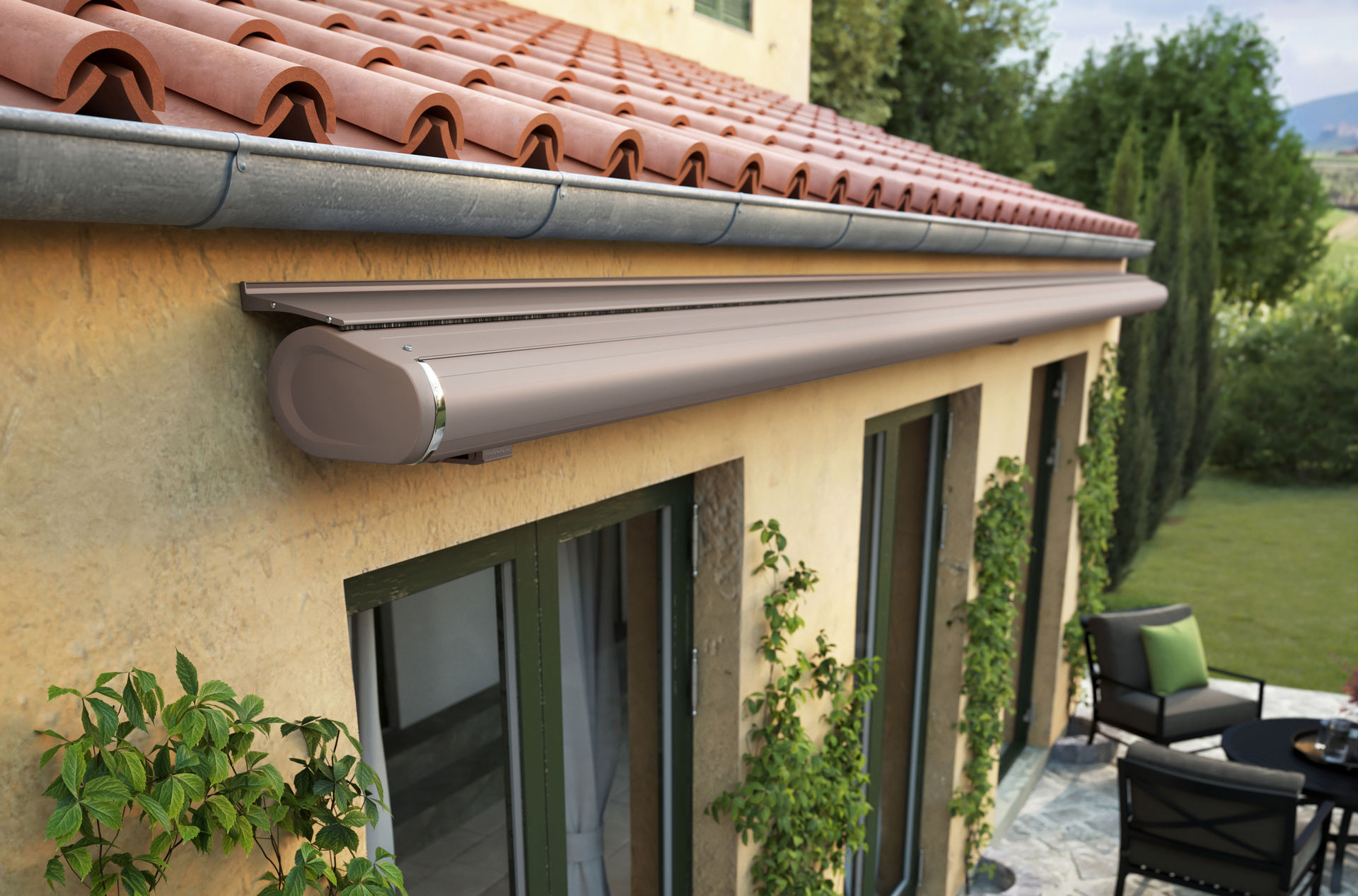 Heel veel schaduw voor elk denkbaar terras! Het compacte knikarmscherm beschikt over een slank profiel, schroefloze optiek en is vervaardigd uit enkel top-kwaliteit onderdelen. De armen van de MX 5010 bevatten een dubbele ketting, optioneel is het zonnescherm te voorzien van bionische pees.