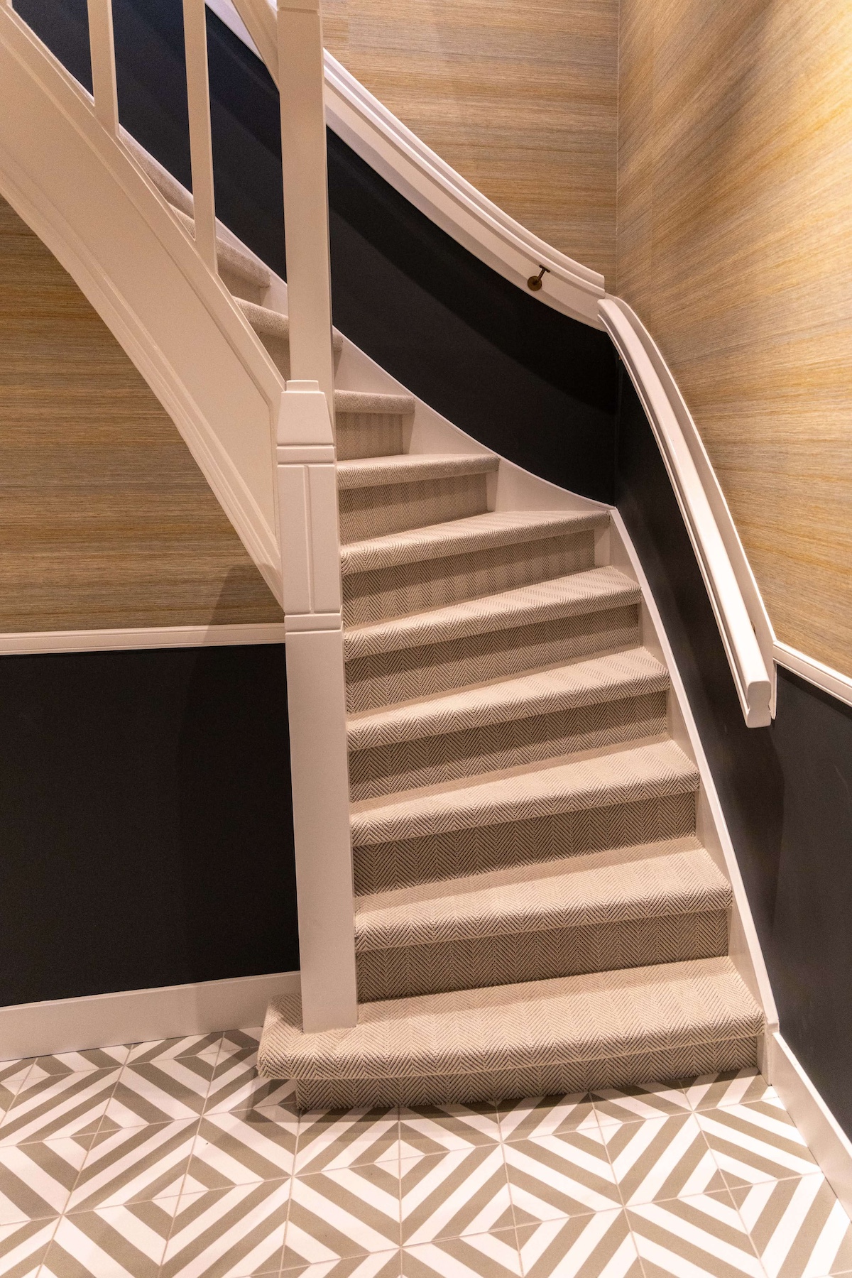 Een trap bekleden met tapijt is dé manier om comfort en stijl toe te voegen aan je interieur. Waar trappen in nieuwbouwwoningen vaak koud en kil aanvoelen, brengt trapbekleding warmte en sfeer. Het zachte materiaal voelt niet alleen prettig aan onder de voeten, maar zorgt ook voor een veilige en geluiddempende trap. Of je nu kiest voor een volledig beklede trap of een elegante traploper, bij Ambiance van der Wal zijn de mogelijkheden eindeloos.