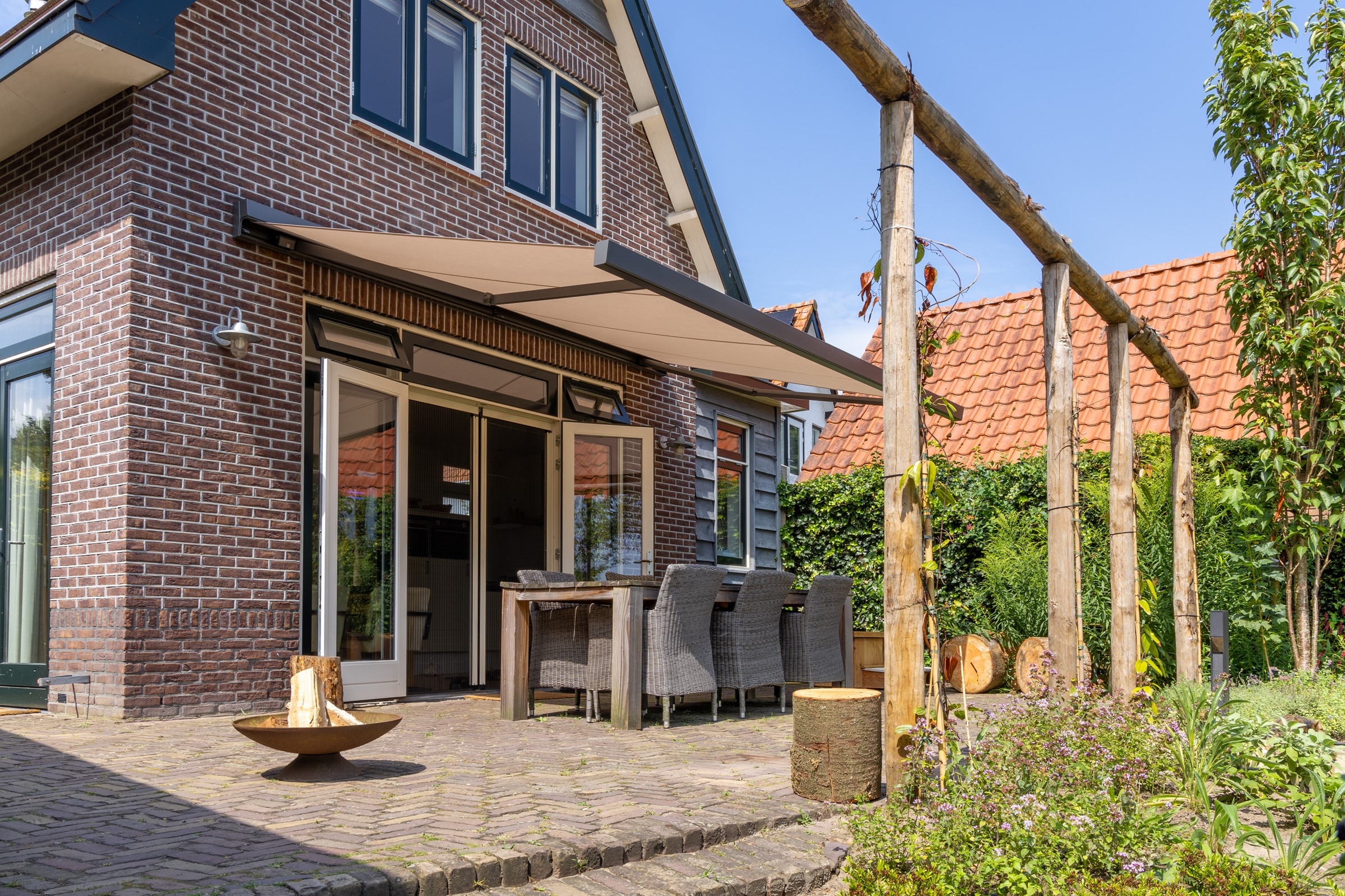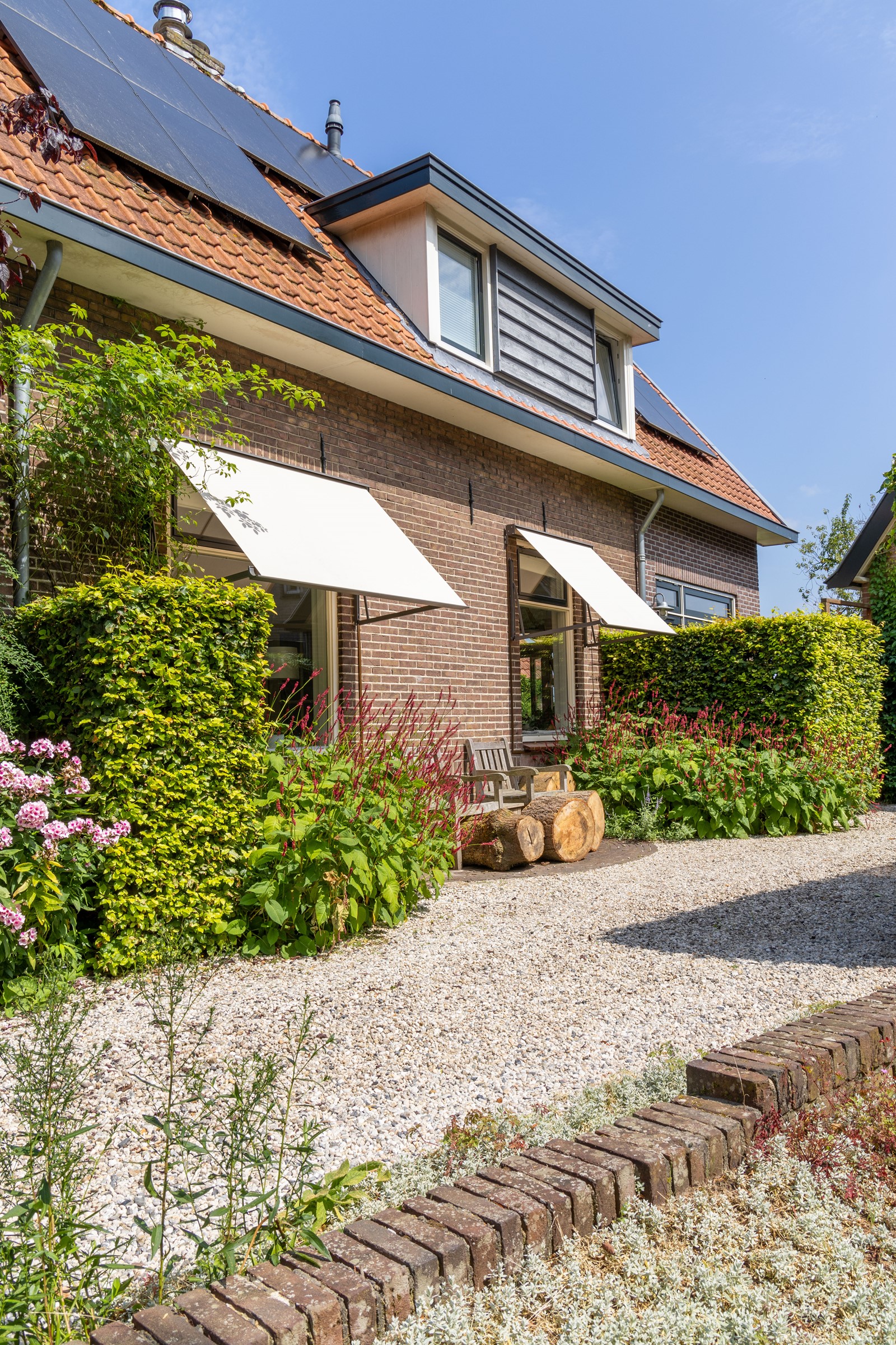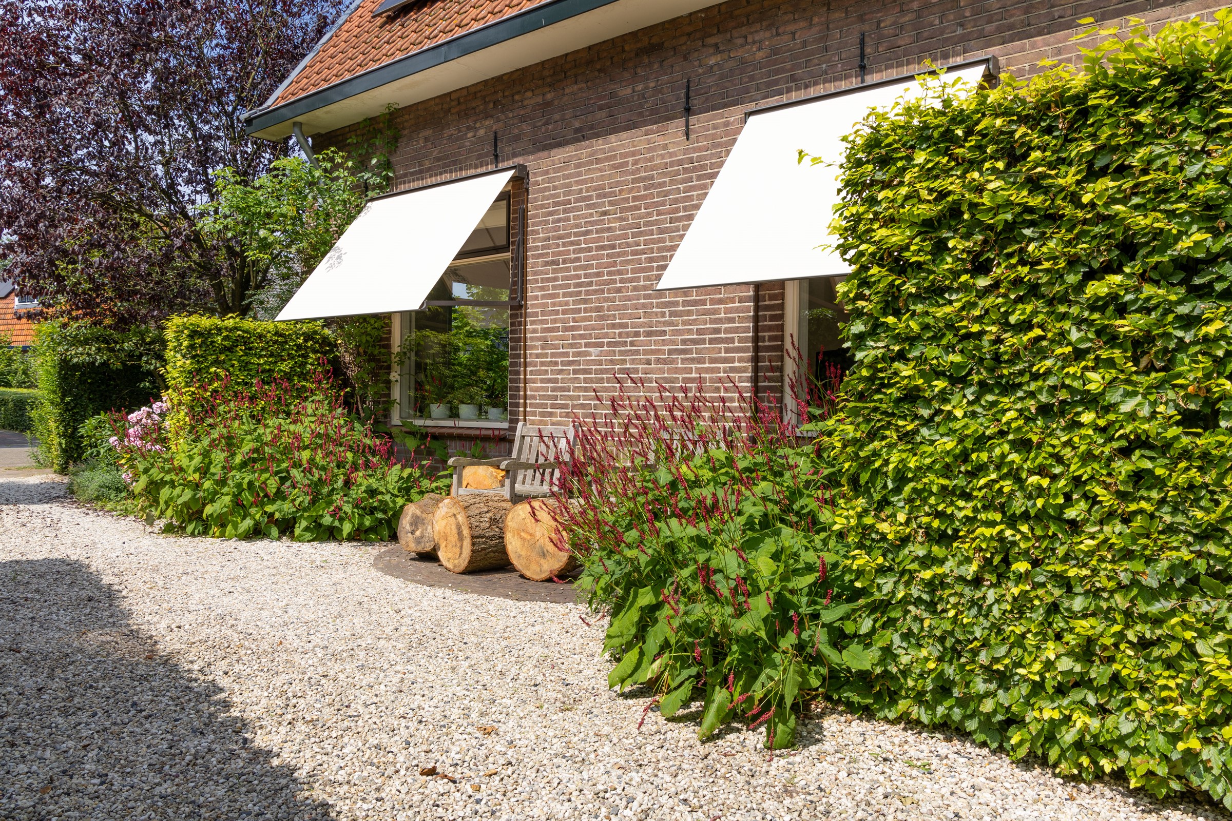 Naast het knikarmscherm hebben we aan de zijkant van de woning uitvalschermen geïnstalleerd om direct zonlicht buiten te houden, waardoor het binnenklimaat ook op warme dagen aangenaam blijft. Zowel het knikarmscherm als de uitvalschermen zijn volledig elektrisch en eenvoudig te bedienen via een handige app. Hierdoor kunnen de klanten de schermen zelfs op afstand in- of uit sturen, wat het risico op windschade aanzienlijk verkleint.
