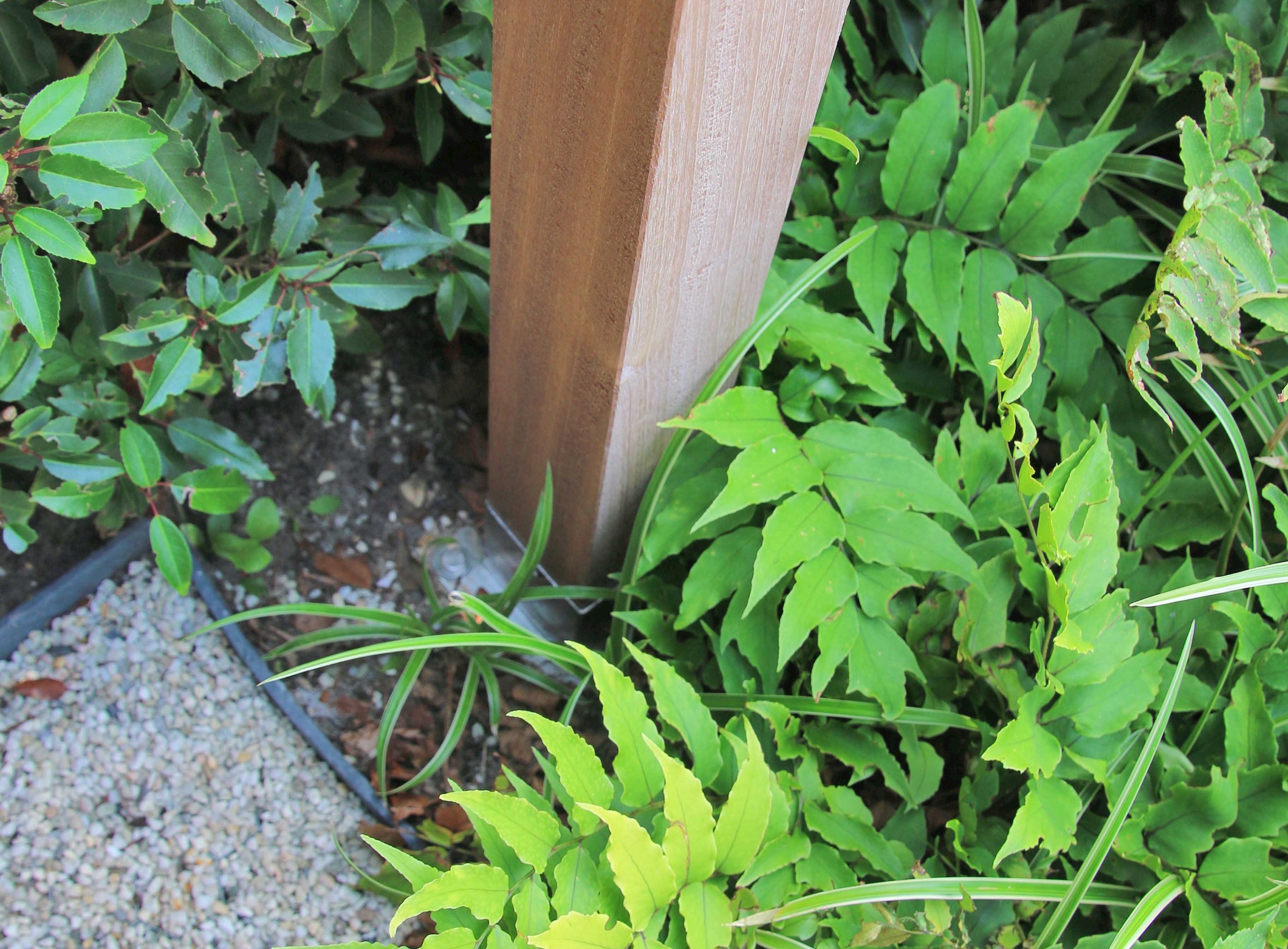 De eindstukken van de staander worden bevestigd in duurzame RVS delen die op de fundering worden bevestigd.