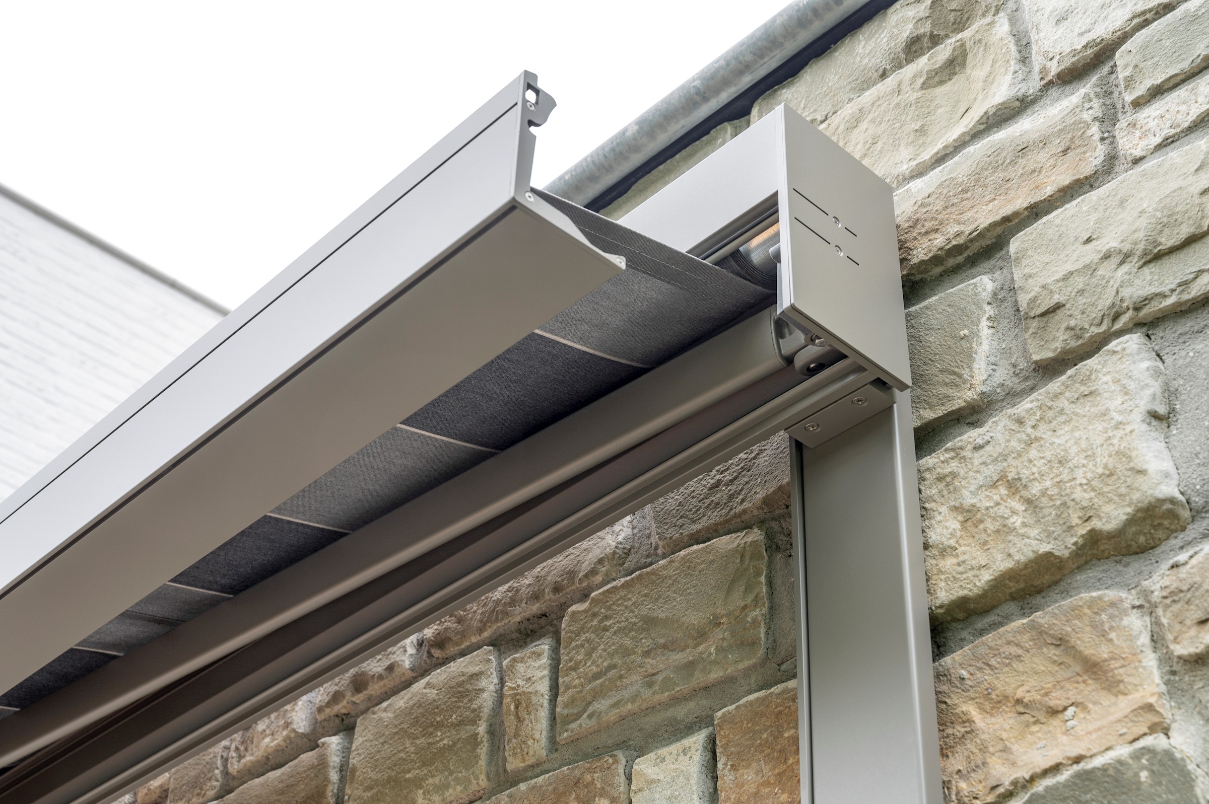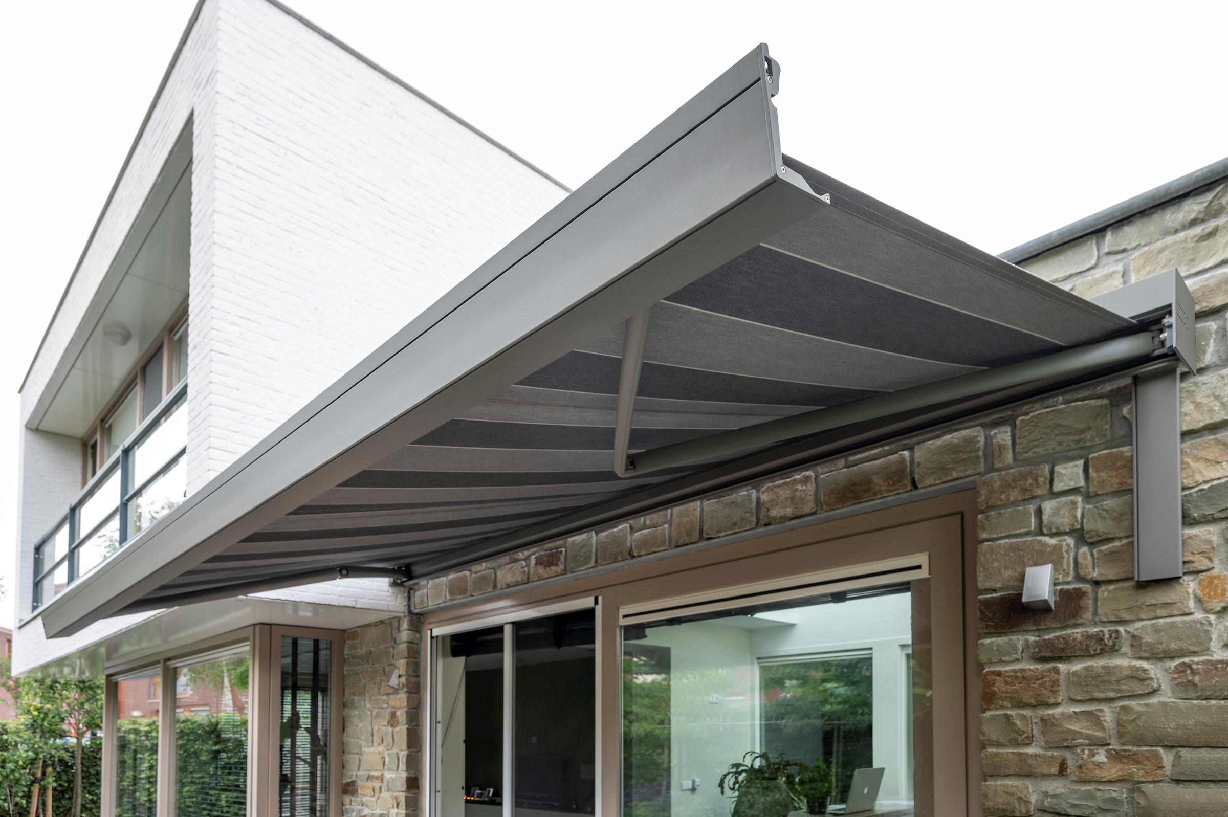 De Flatline is een strak vormgegeven zonnescherm die perfect past bij de stijlvolle hoekige vlakverdeling van moderne huizen. Het afwerkingsniveau van Flatline is van een goede kwaliteit met een stevige, robuuste bevestiging van de armen. Op de zijkappen zijn enkele schroeven zichtbaar. De Flatline kan worden voorzien van een ingebouwde strip met LED-verlichting.