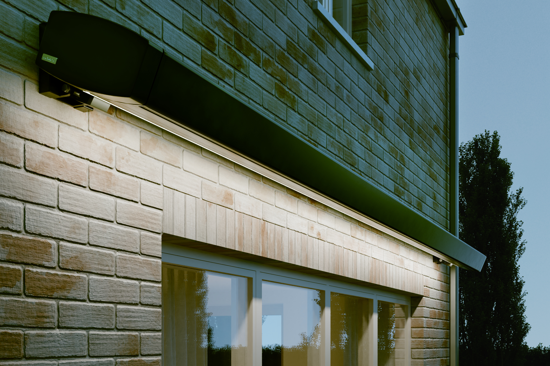 De bediening is standaard elektrisch (Somfy IO) met afstandsbediening. De motor is SmartHome ready en voorbereid voor app-bediening via smartphone/tablet.